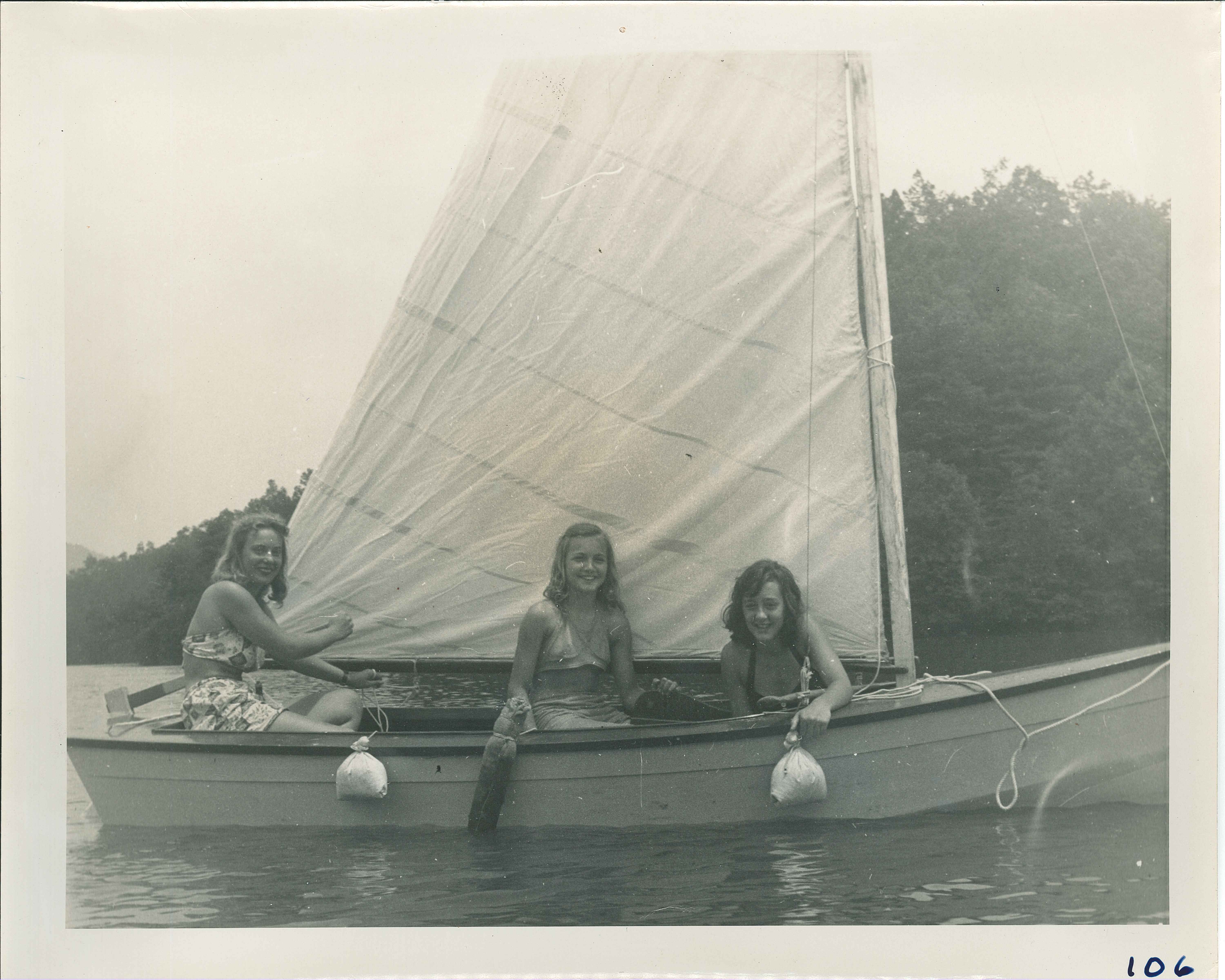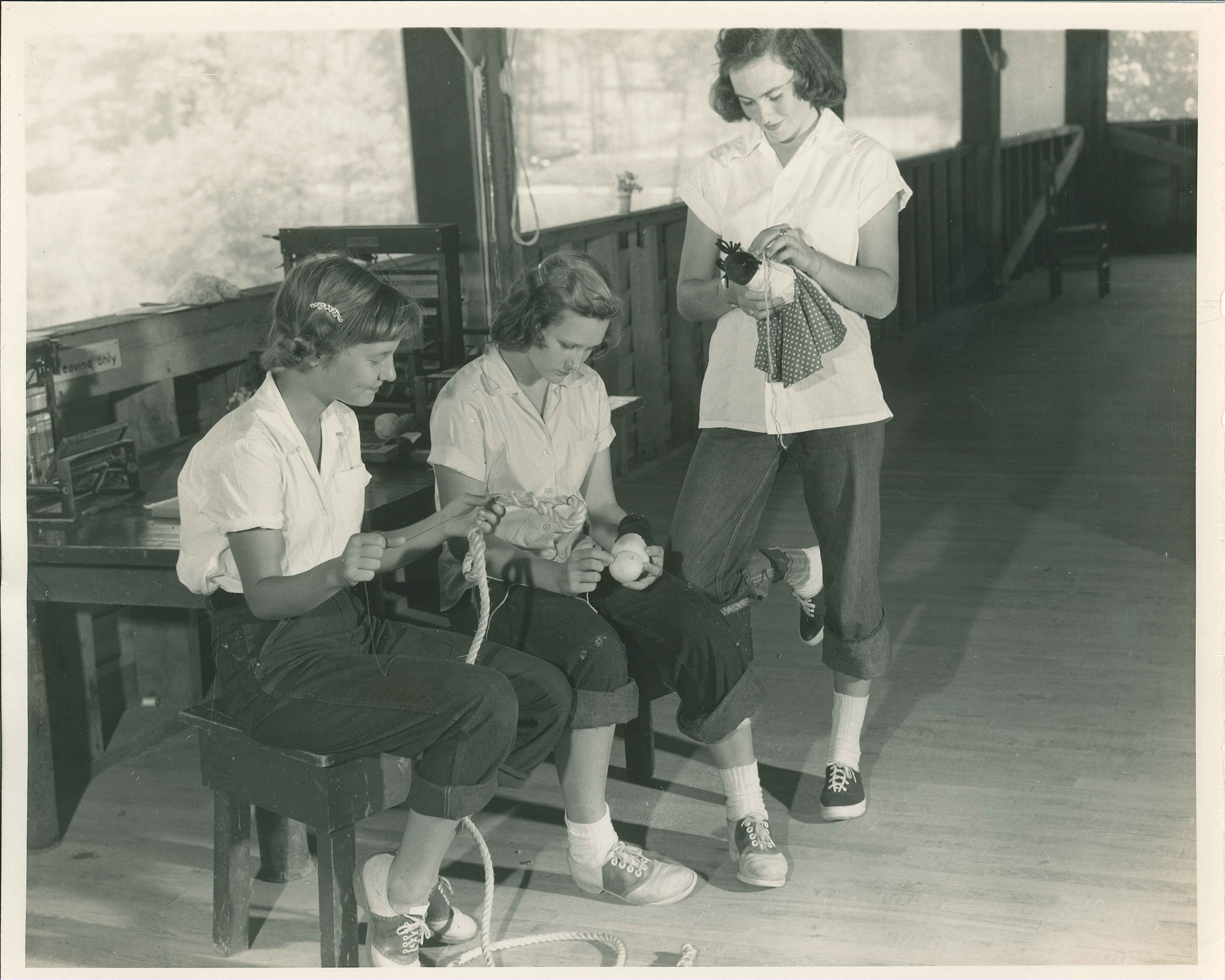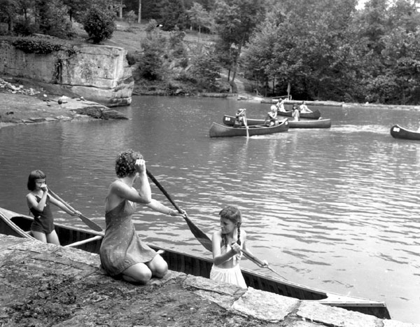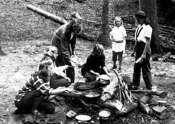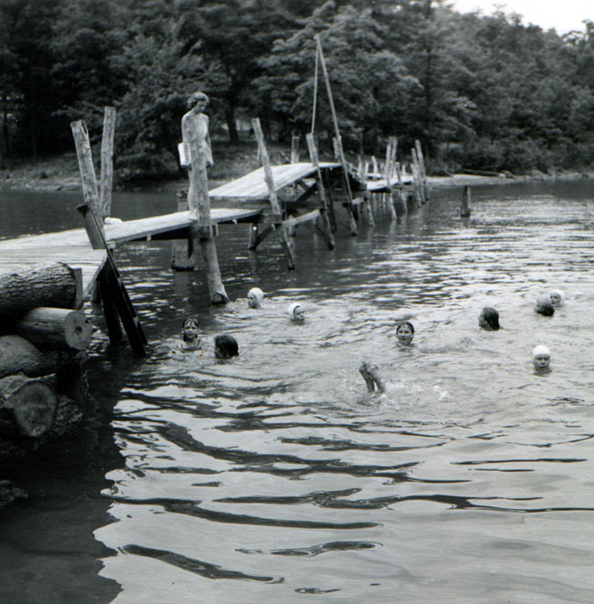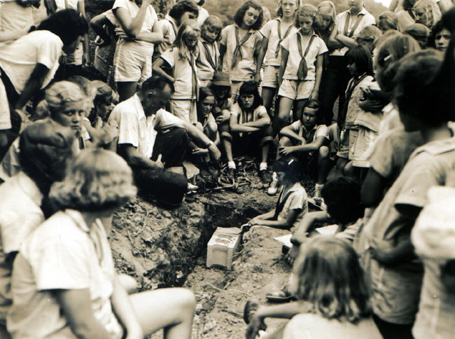 1948. Chief and campers Laying the first cornerstone of the Lodge.